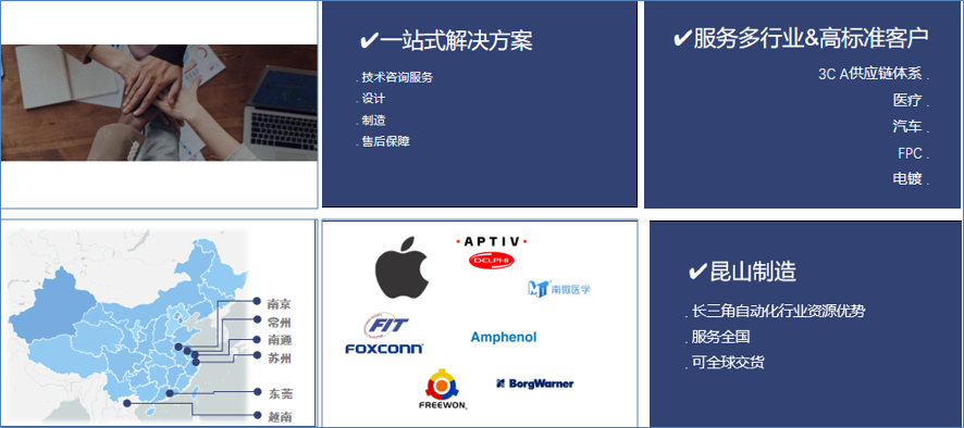 主營(yíng)高標(biāo)準(zhǔn)非標(biāo)定制設(shè)備,3C、電鍍、沖壓、FPC、成型等多行業(yè)上下料設(shè)備,視覺類軟硬件設(shè)備,并提供相關(guān)技術(shù)支持和整套解決方案。 自有視覺團(tuán)隊(duì)提供非標(biāo)設(shè)備常規(guī)視覺服務(wù)。與業(yè)界頂尖視覺公司長(zhǎng)期合作,一站式提供外觀檢AI深度學(xué)習(xí)服務(wù)。